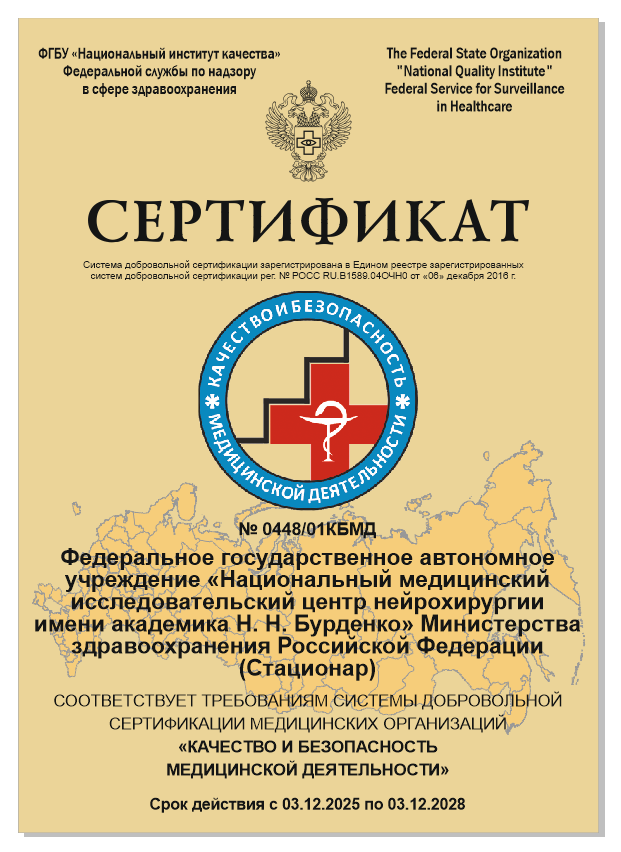Федеральное государственное автономное учреждение «Национальный медицинский исследовательский центр нейрохирургии имени академика Н.Н.Бурденко» Министерства здравоохранения Российской Федерации